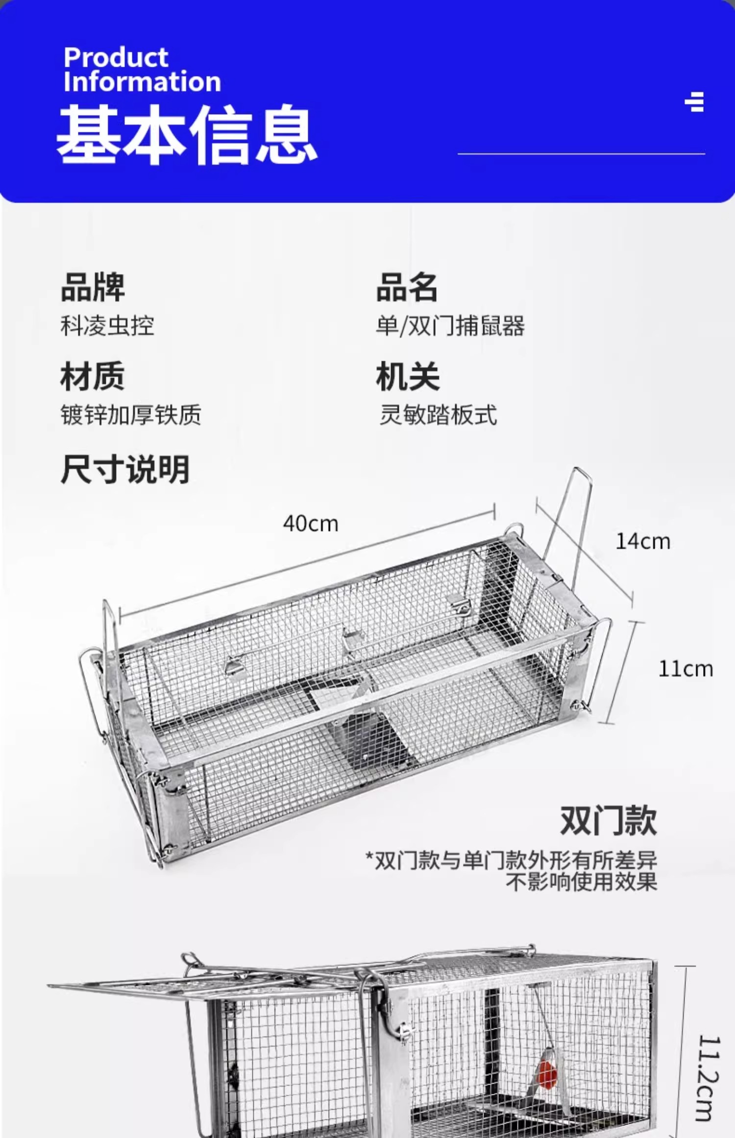 當前位置:首頁 > 滅老鼠係列 > 科淩蟲控-單/雙門捕鼠籠