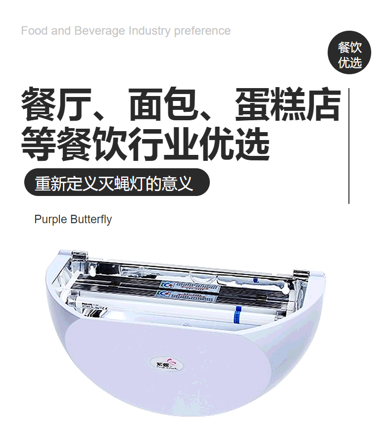 該燈顛覆了傳統格闌珊式電擊滅蠅燈高壓電流裝置,不產生電弧、火花,工作安靜外觀大方,捕蟲效果更出眾.